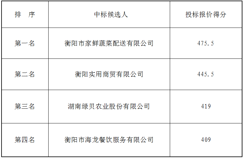 衡陽(yáng)市衡府賓館有限公司(養(yǎng)正園)食堂食材(蔬菜類)公開比選候選人公示