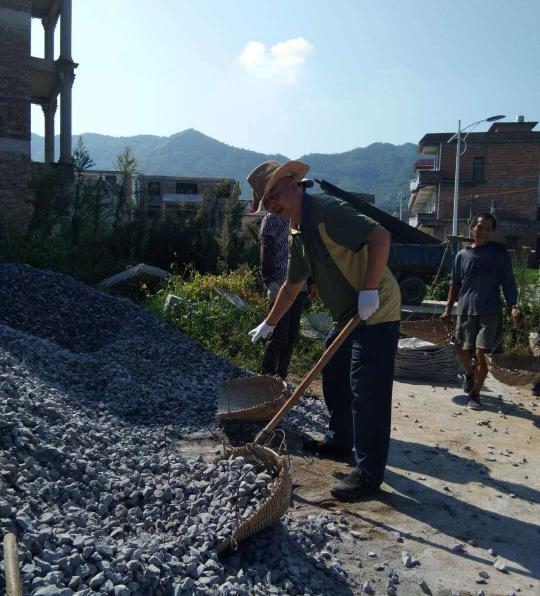 2018年8月20 日早晨8:30的關(guān)市寶新村譚海容家門口,已是一番熱鬧的勞動場面,水泥攪拌機(jī)歡快地運(yùn)轉(zhuǎn)著,人們在夏日的朝陽下?lián)]汗如雨,有條不紊地對門口的地面進(jìn)行找平、水泥硬化,原來這是弘信公司的全體員工對貧困戶譚海容家的一次集體扶貧活動。他的老母親80多歲了,眼睛視線不好,家里因?yàn)樨毨?,屋里和門口的地面凹凸不平,為防止老人意外摔倒,大家集體策劃了此次扶貧活動。